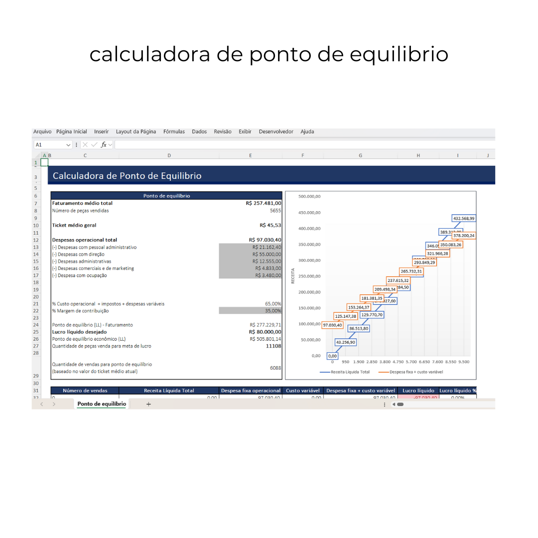 Descubra o ponto de equilíbrio do negócio do seu cliente e saiba exatamente o quanto ele precisa vender para cobrir os custos e começar a lucrar.